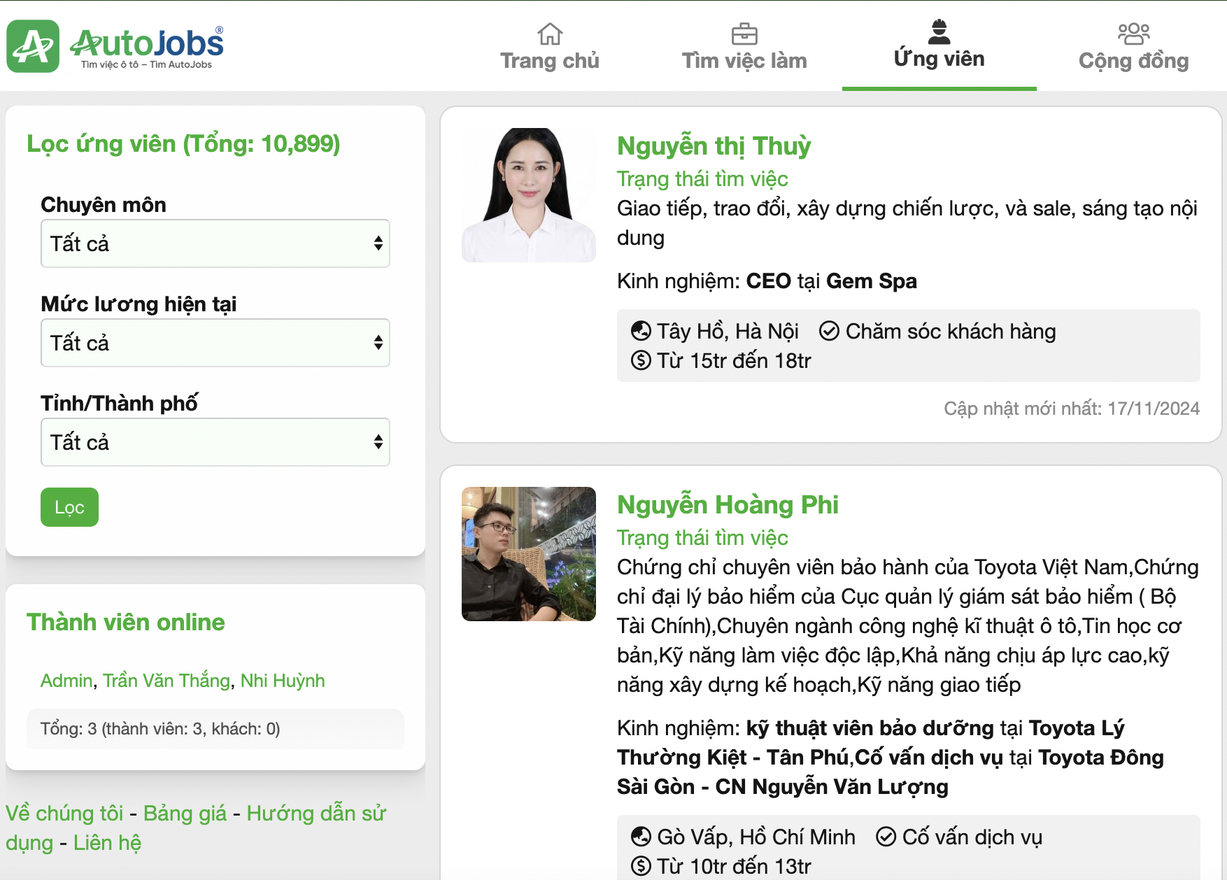 + Website: www.autojobs.co , với hơn 12.000 lượt truy cập tìm việc mỗi tháng và có sẵn hơn 10.000 CV trên hệ thống.